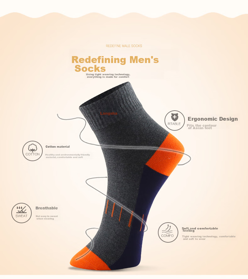 **Fashion Trends:** LangSha's stylish and comfortable men's cotton socks for the Autumn 2021 season.