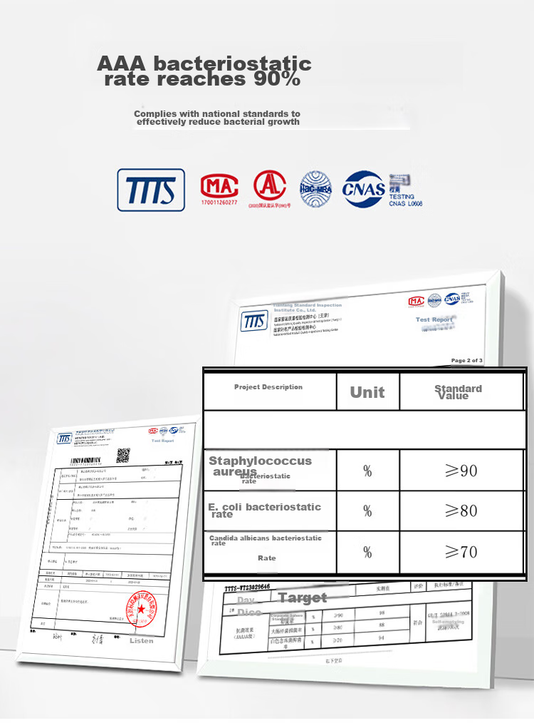 - Antibacterial rate of 90% meets national standards for reducing bacterial growth