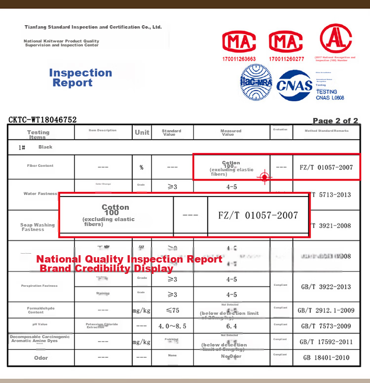 Tested and certified by China National Textile and Apparel Quality Supervision Inspection Center