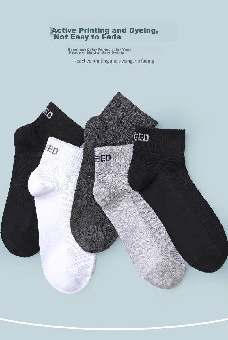Design: Dry mesh for dry, breathable, and odor-resistant wear, high elastic cuff for comfort and no slipping, reactive printing and dyeing for color fastness, 200N tight weave for durability and resistance to pilling