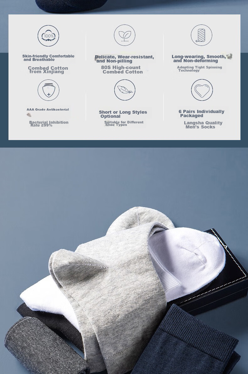 These LangSha Men's Business Socks are crafted with precision using high-quality long-staple cotton, offering a comfortable, breathable, and durable wearing experience. The antibacterial properties, fine craftsmanship, and attention to detail make them a perfect choice for the modern gentleman seeking both style and functionality in their everyday attire.