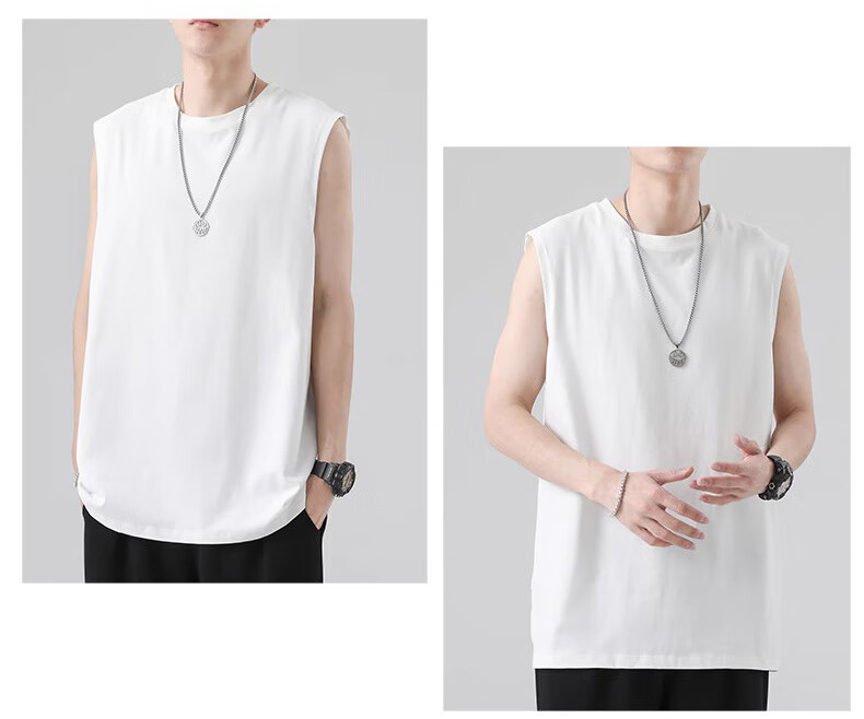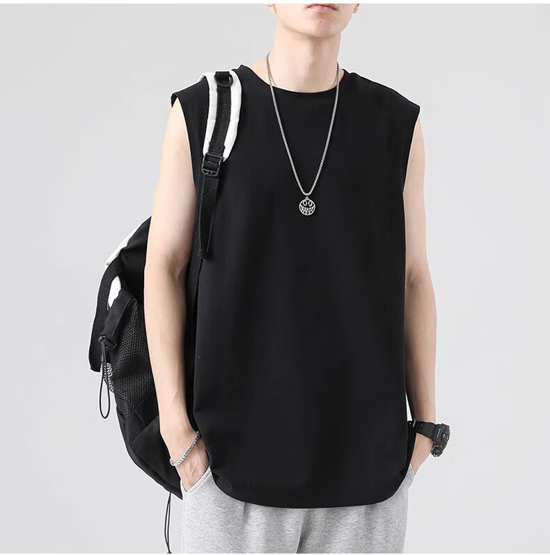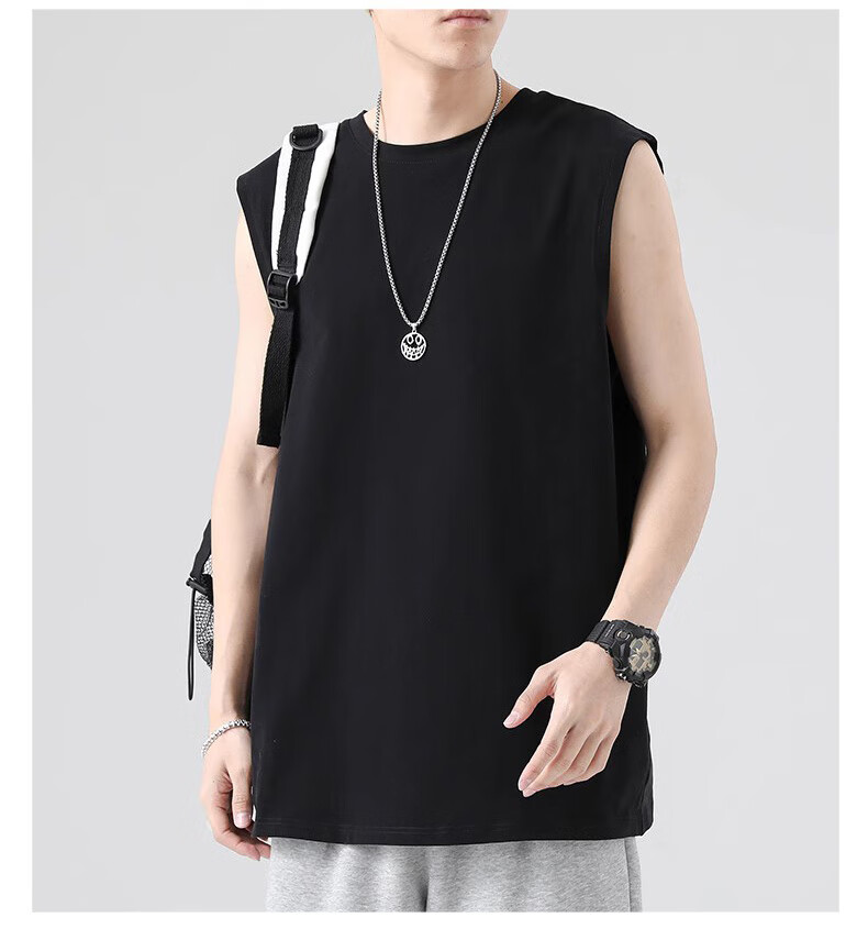 LangSha Men's Tank Top Men Wide Shoulder Strap Summer Sports Sleeveless Cotton Vest Inner Wear Fitness Basketball Running Base Sweatshirt