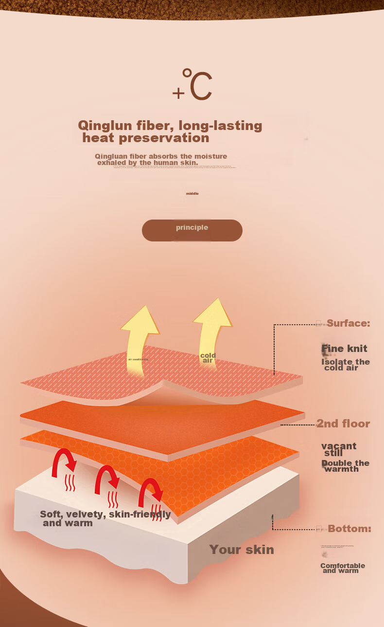 **Technology:** Quilted with QINGLUN fiber for continuous warmth locking, Outer layer resists cold, Inner layer absorbs moisture for warmth
