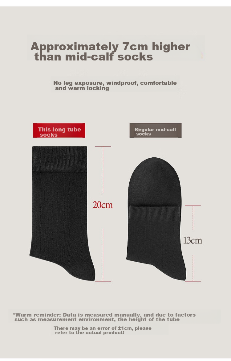 Approximately 7cm higher than mid-calf socks, providing extra warmth and wind protection