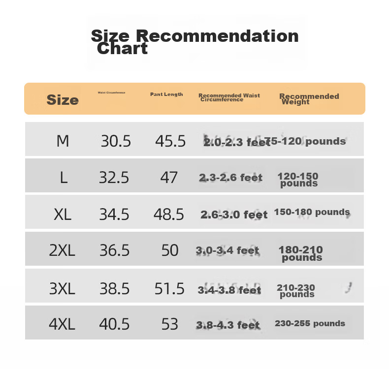 | Size | Waist (cm) | Length (cm) | Recommended Waist | Recommended Weight |