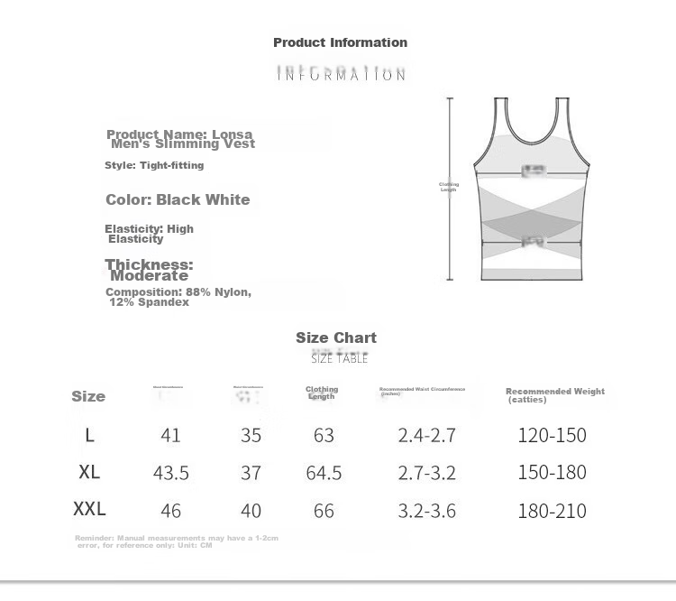 | Size | Chest Circumference (cm) | Waist Circumference (cm) | Length (cm) | Recommended Waist (inch) | Recommended Weight (lbs) |