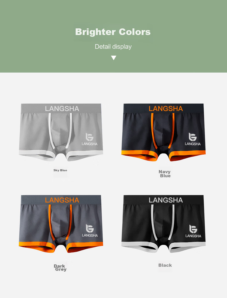 LangSha underpants combine comfort, style, and antibacterial protection in a range of vibrant colors and innovative designs. Made from high-quality cotton and spandex blend, these underpants offer a snug fit with breathable and moisture-wicking properties. The AAA-grade antibacterial protection ensures a high inhibition rate against various bacteria. The seamless design and elastic waistband provide a comfortable and secure fit, while the double-needle stitching ensures durability. Say goodbye to dull undergarments and embrace the fashion-forward LangSha underpants for a stylish and comfortable experience.