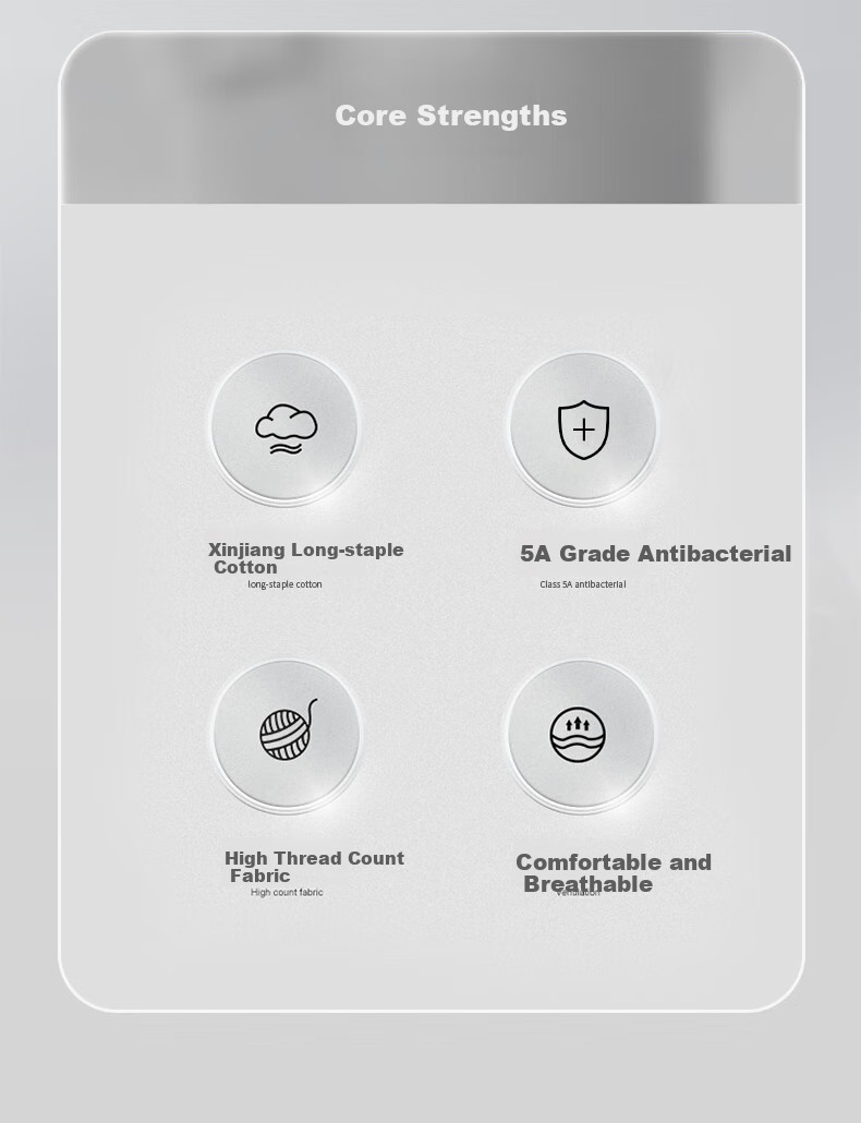 **Core Advantages:** Long-staple cotton from Xinjiang, 5A antibacterial rating, high count fabric for comfort and ventilation