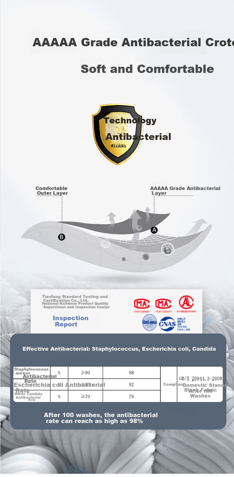 **Crotch:** 93.7% viscose, 4.2% spandex, 2.1% polyester fiber, 5A antibacterial rating