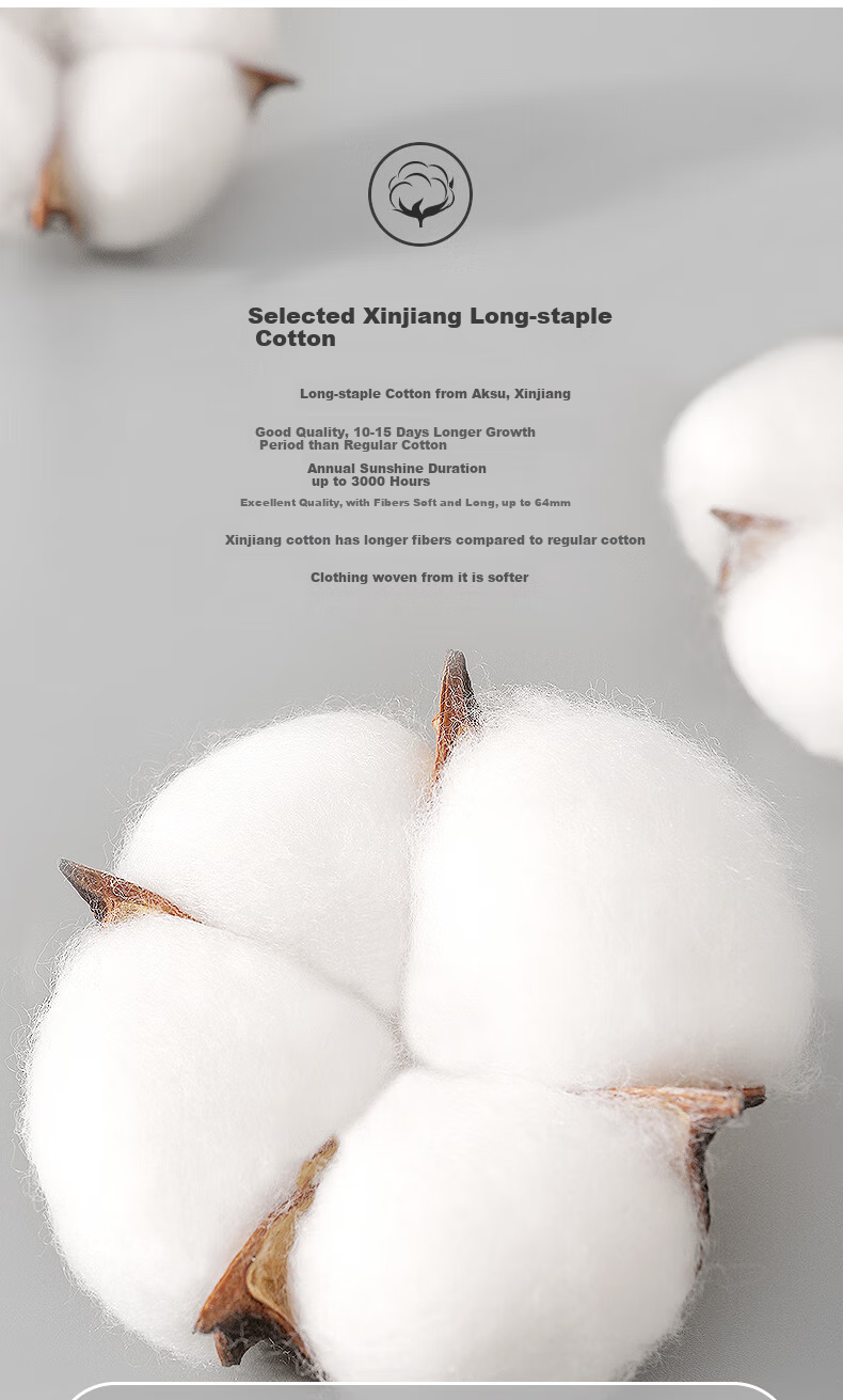 **Fabric:** 50s Xinjiang long-staple cotton, providing comfort, breathability, and softness