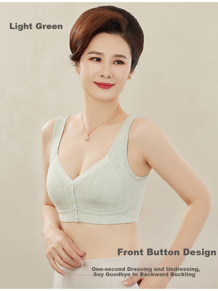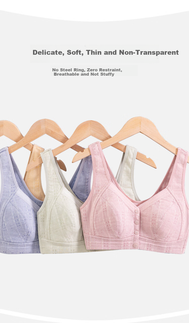 **Details:** 100% pure cotton inner layer, built-in cotton layer for moisture absorption and anti-bulge, delicate, soft, non-irritating, lightweight, not see-through, widened side wings for side breast support and anti-spill, front open buckle for easy wearing and removal