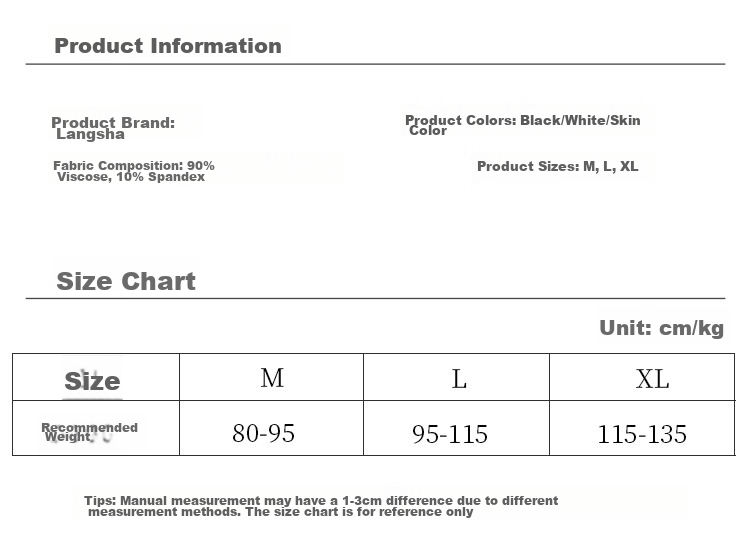 **Note:** Please allow 1-3cm differences due to manual measurement. Size chart is for reference only.