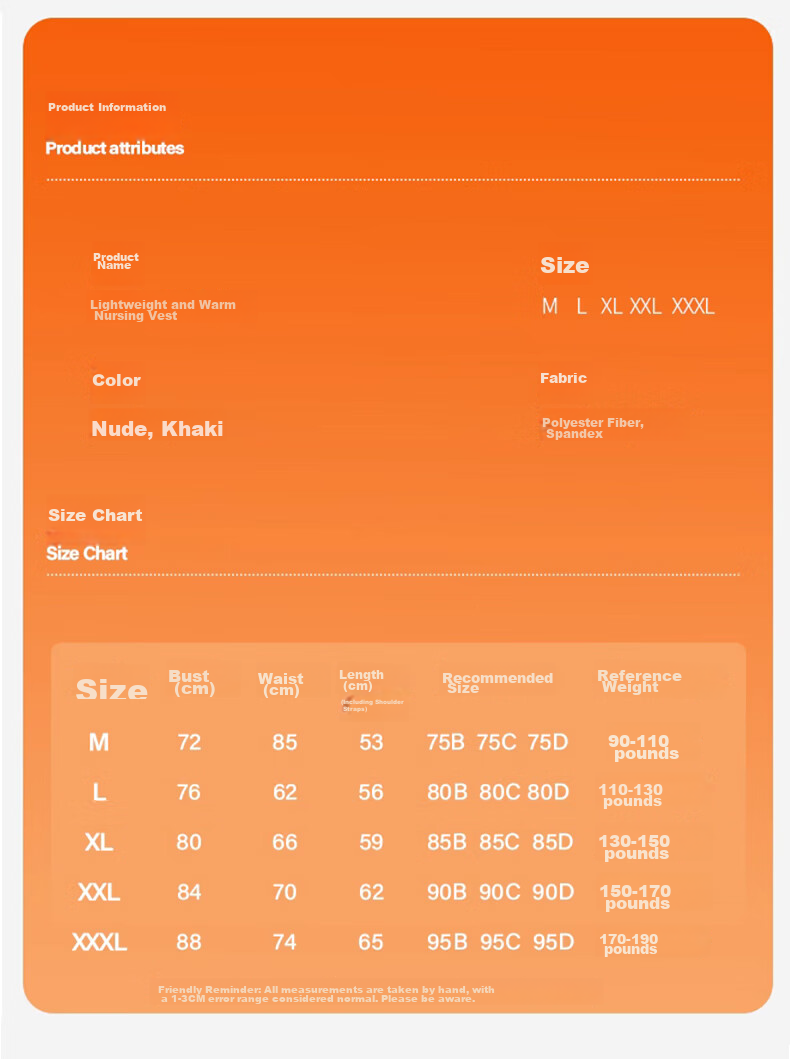 - M: Bust 72cm, Waist 85cm, Length 53cm, Suitable for 75B/C/D, 90-110 lbs