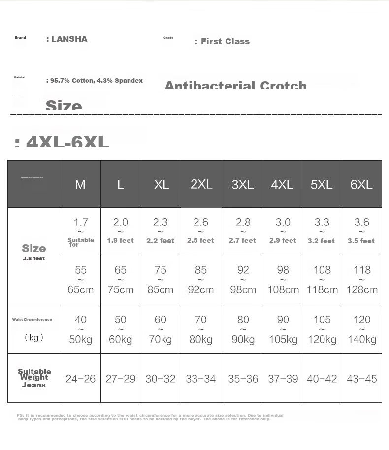 Sizes: 4XL-6XL, suitable for waist circumference and weight