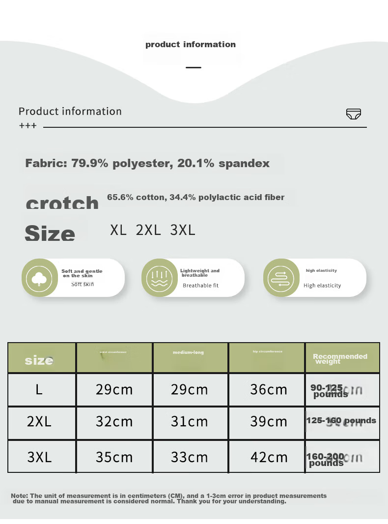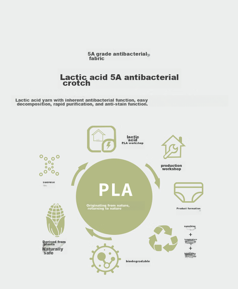 **Additional Features:** Lactic acid 5A antibacterial crotch, lactic acid yarn with inherent antibacterial properties, easy to decompose and purify, made in a PLA workshop with natural sources, biodegradable
