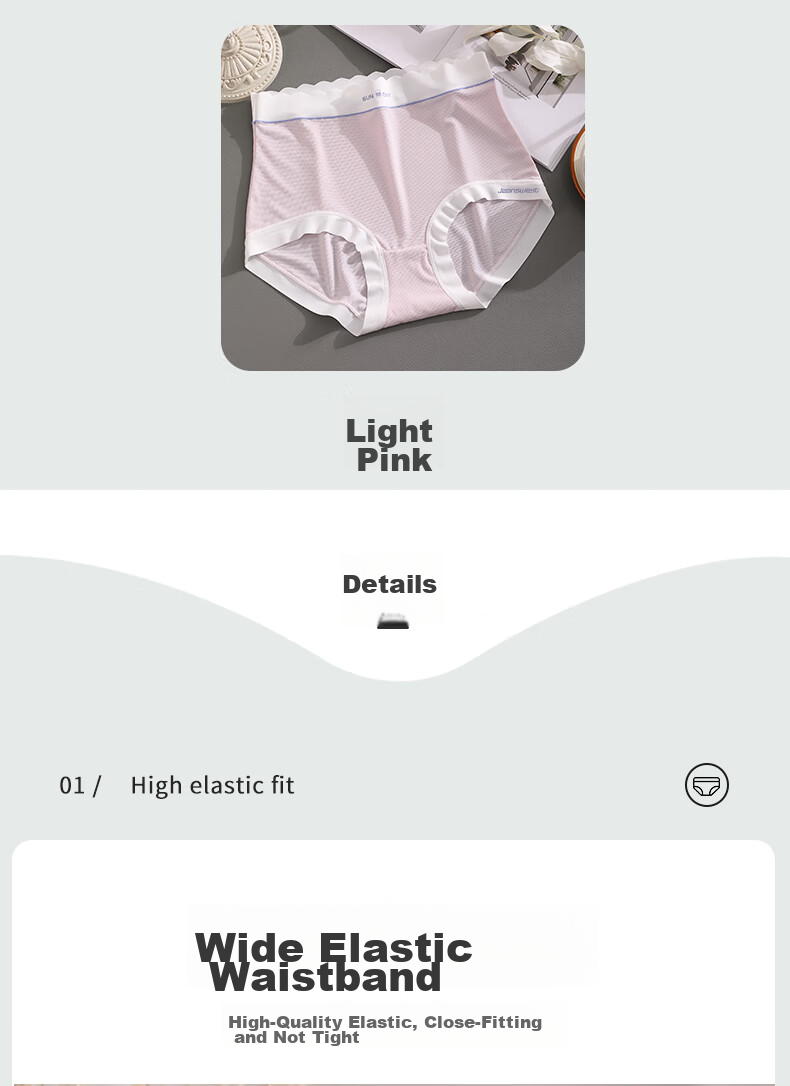 **Details:** High elasticity with widened waistband, seamless leg openings, skin-friendly fit, and 5A antibacterial properties