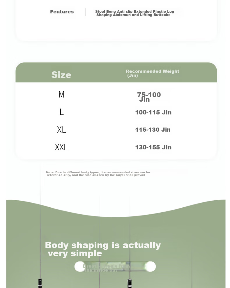 - Steel bone anti-slip design for shaping legs, abdomen, and lifting buttocks