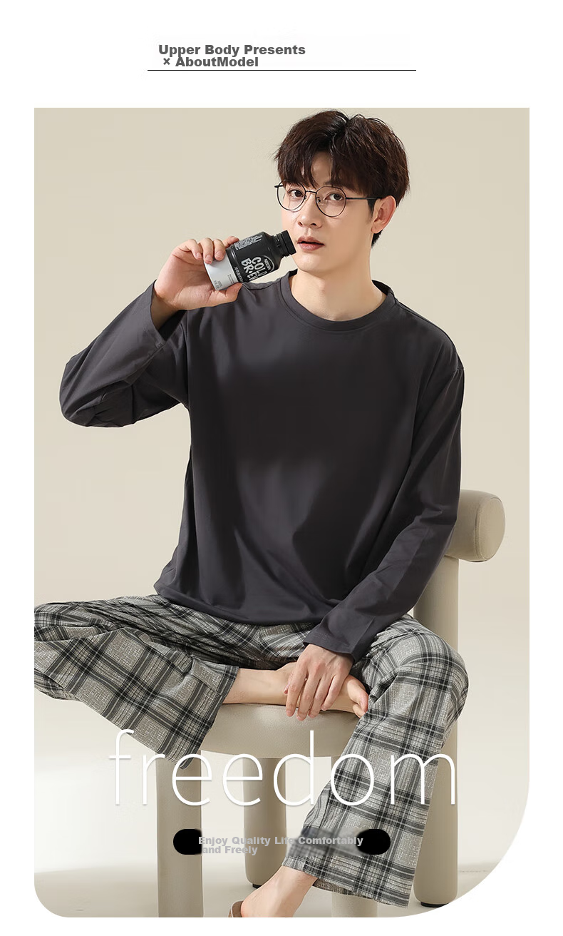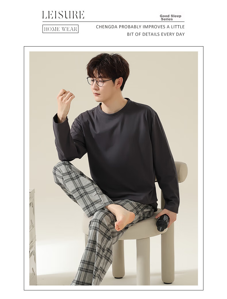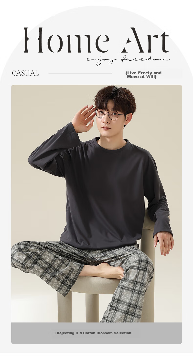 **Description:** A set of simple and casual pajamas for home life, not only comfortable but also an attitude towards life