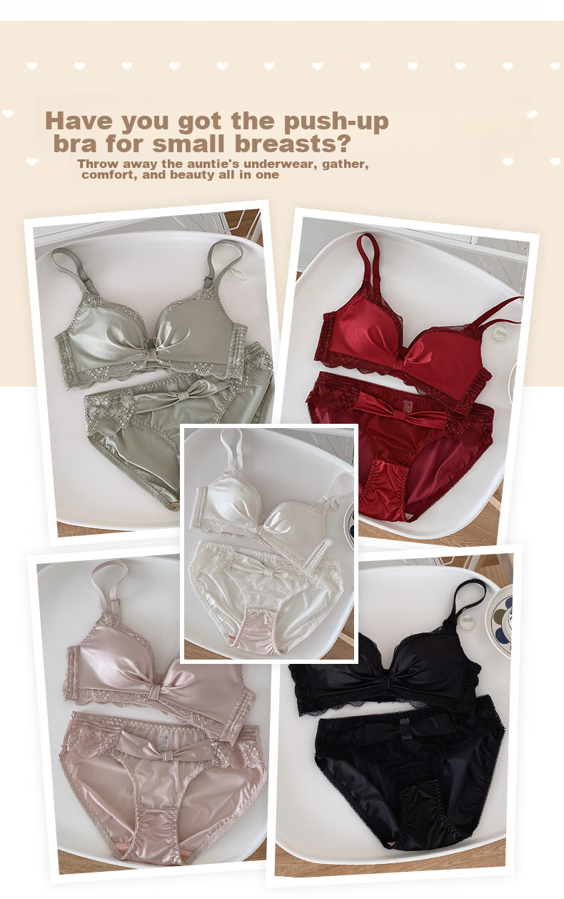 Features: Gathered and stylish, suitable for small breasts, enhancing sexiness. Comfortable underwear with peach-shaped cups and delicate lace design. Skin-friendly and visible thickness.