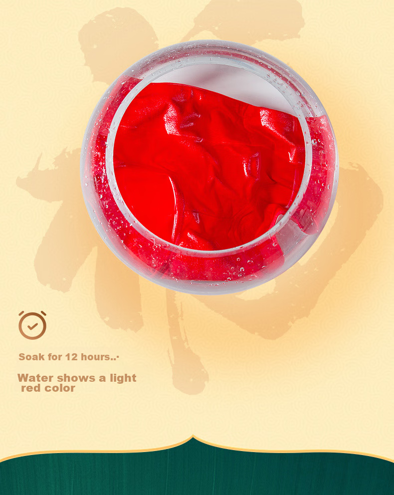 **Care Instructions:** Soak in water for 12 hours, color may appear slightly lighter red
