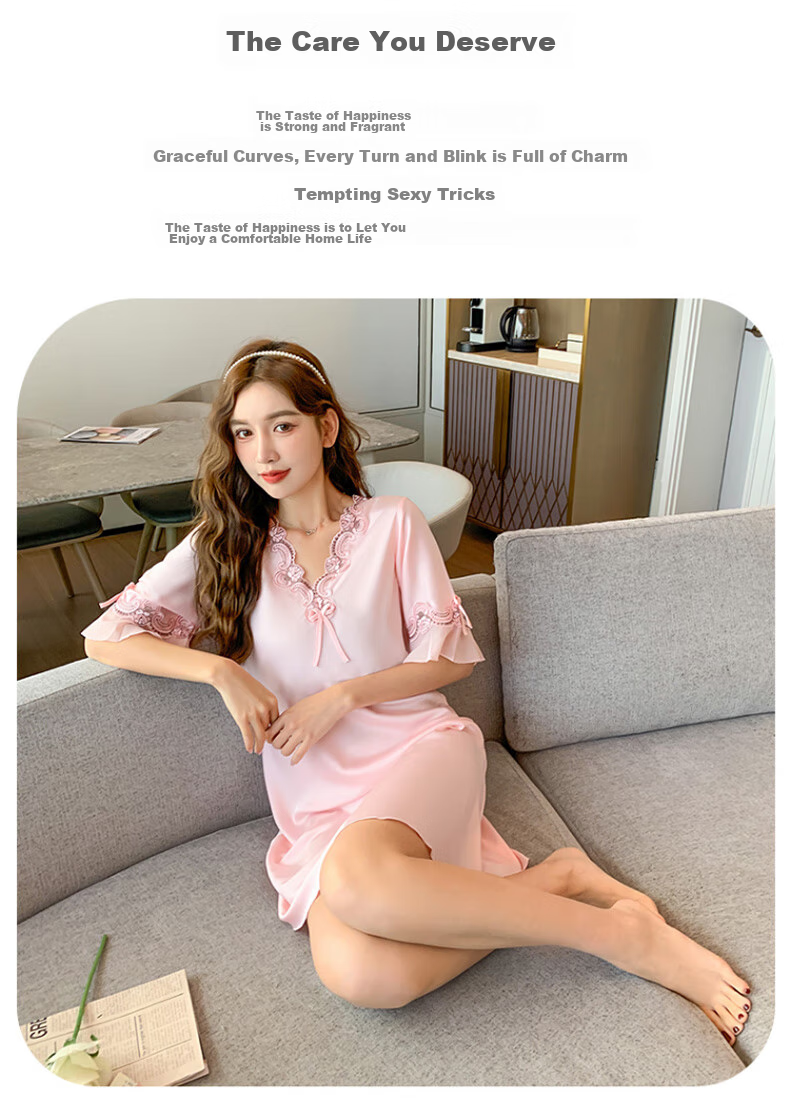 **Description:** Lightly sensual sleep dress for 2022, designed to be sexy for a more beautiful self. Enjoy the care you deserve, with a strong and fragrant taste of happiness. The graceful curves exude charm with every turn and blink, featuring seductive sexy details. The taste of happiness is about enjoying a comfortable home life.