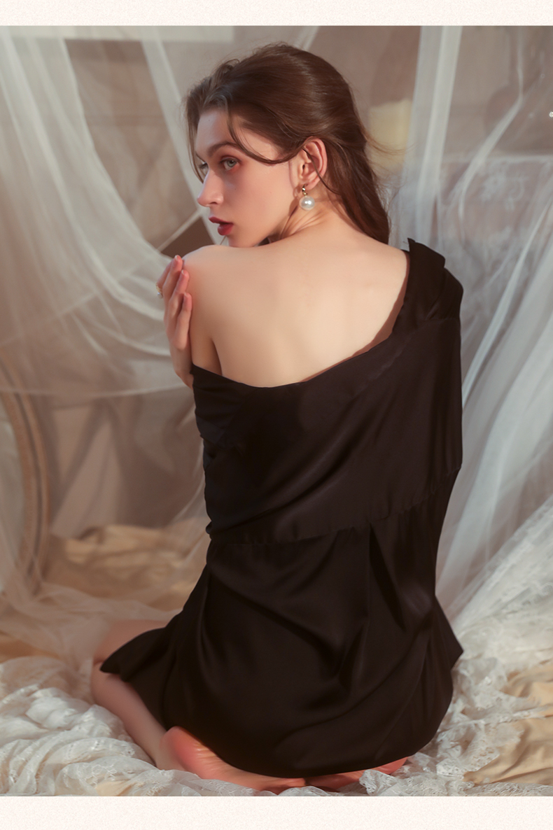Description: Embrace the eternal charm of sensuality with the whisper of the night. The minimalist lazy style shirt, tneyer.