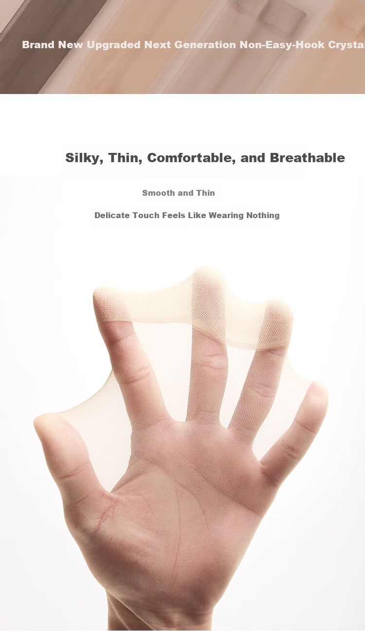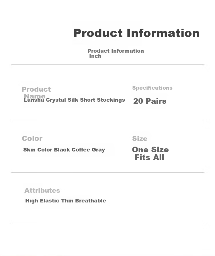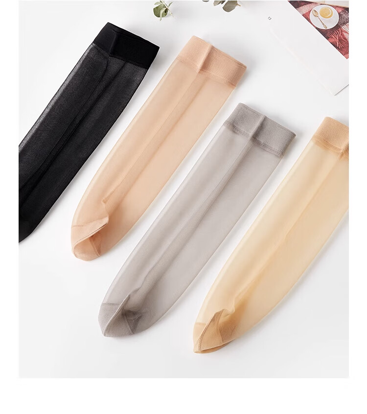Description: These crystal sheer short stockings are durable, breathable, abrasion-resistant, and comfortable. They are designed to be high elasticity and resistant to snagging. The fine texture of the soft crystal silk fabric provides a delicate and comfortable touch. The high elasticity ribbed cuff is finely stitched to prevent slipping and tightness.