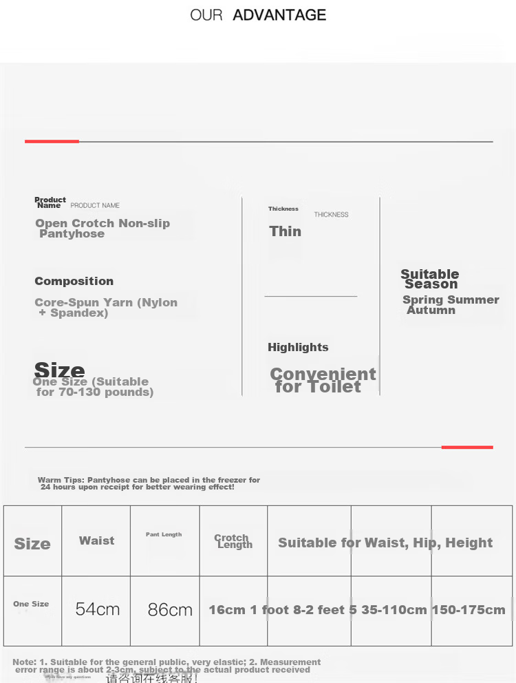 **Product Name:** Open Crotch, Non-slip, New Sensation of Open Crotch, CONFIDENTIAL, DELIVERY, Beauty Temptation, Leg Temptation