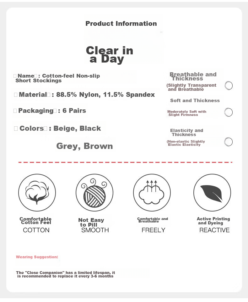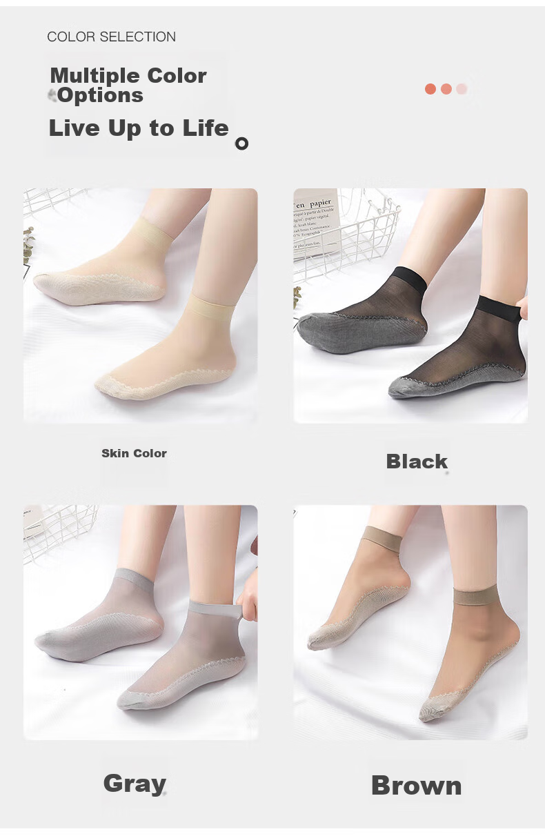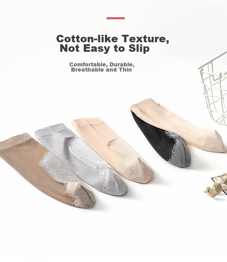 **Product Name:** Cotton Feel Non-Slip Short Silk Socks, Thin and Breathable