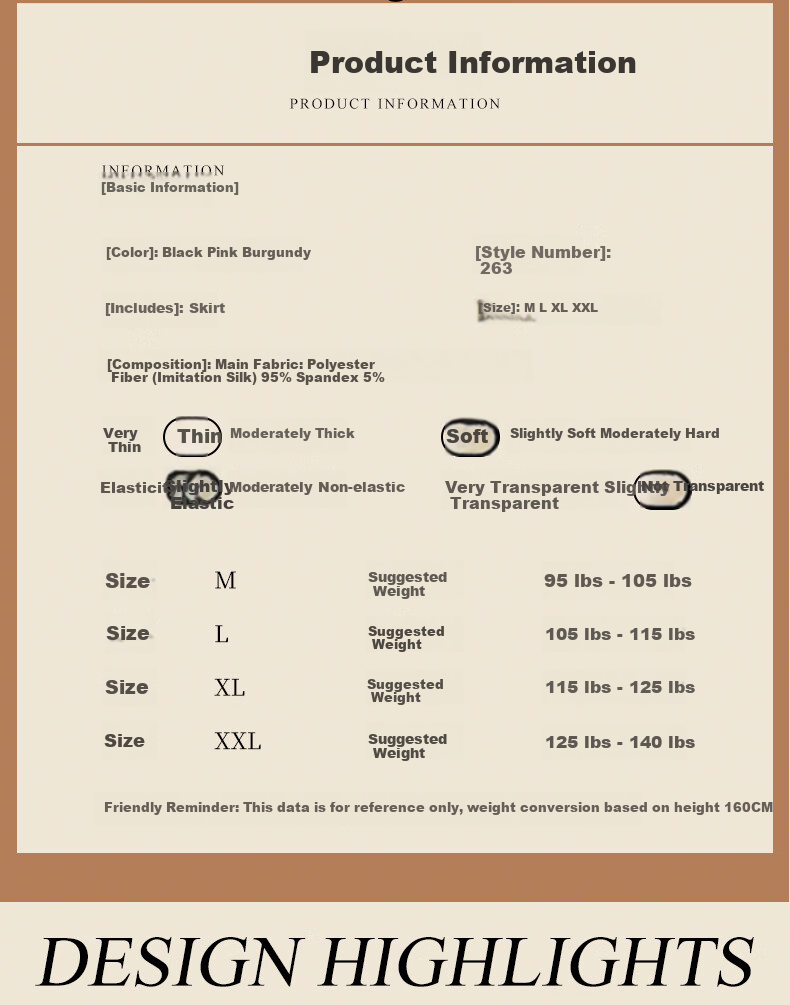 **Material:** Main Fabric: 95% Polyester (Imitated Silk), 5% Spandex