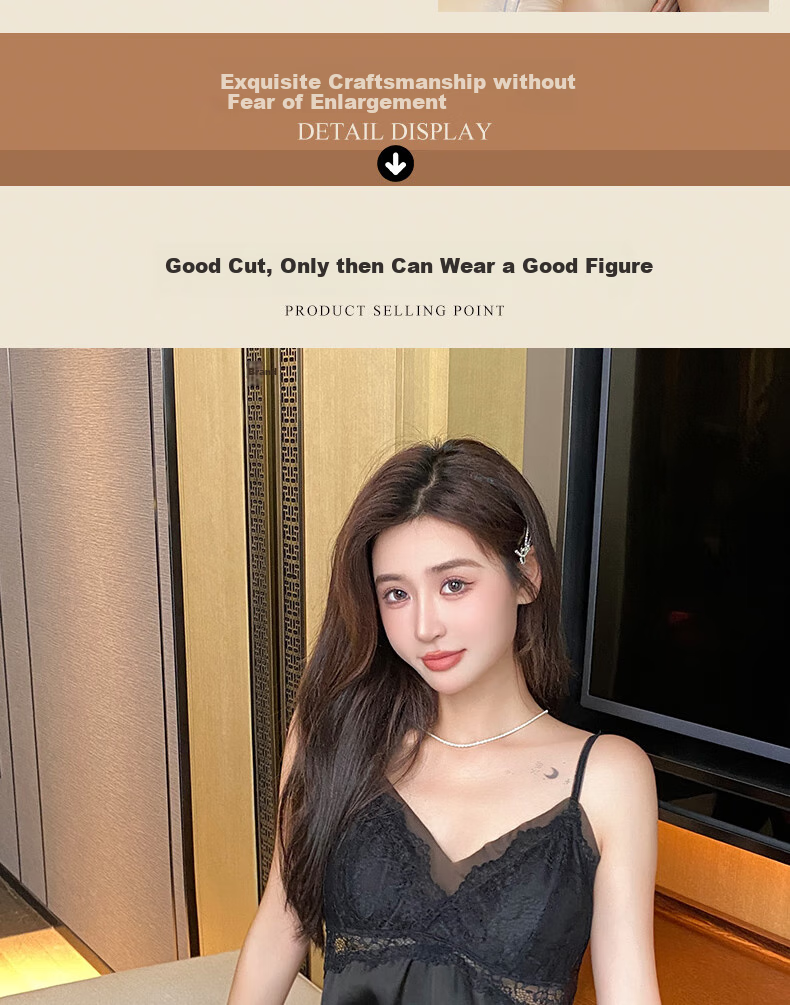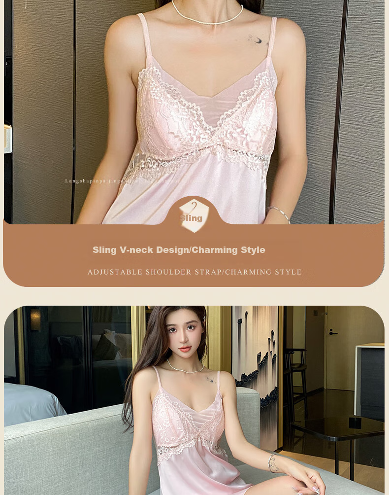 **Selling Points:** Suitable for various body types, A-line silhouette with ergonomic cut, lace details, adjustable straps, V-neck design, suitable for different occasions