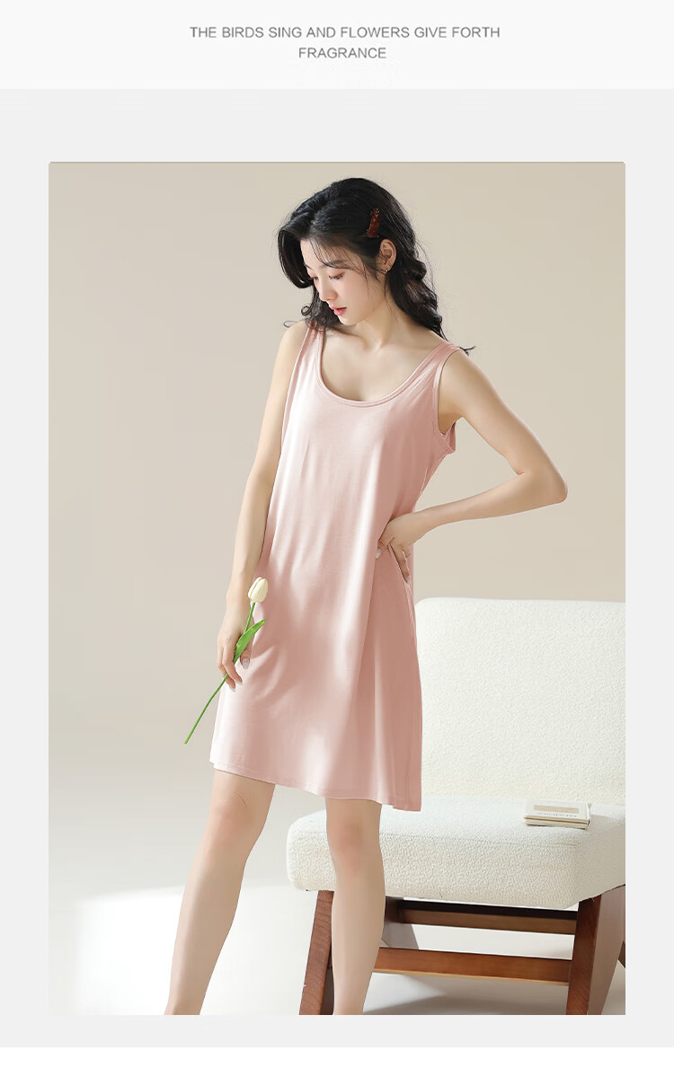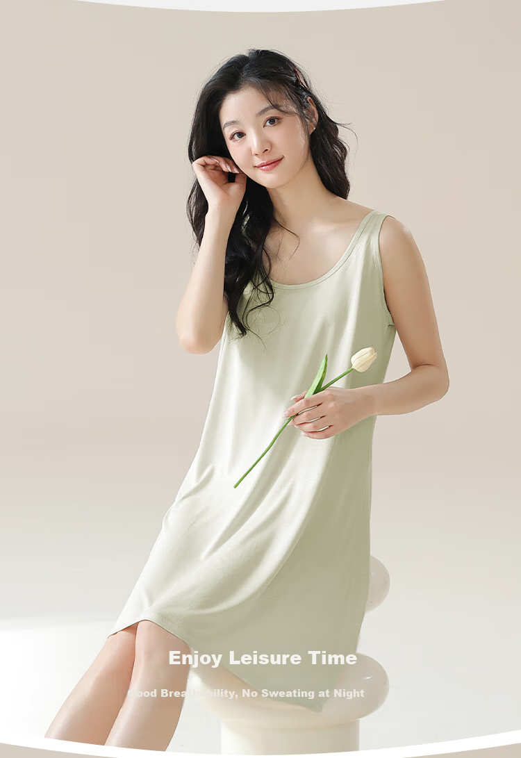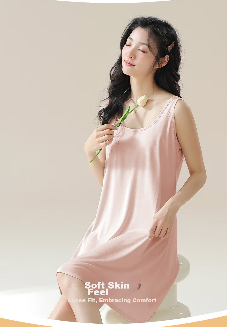 **Description:** Casual and comfortable nightgown, soft and smooth, silky luster, with a luxurious feel and elasticity. Made with Modal cool sensation technology, which has 50% higher moisture absorption than cotton, keeping you dry and cool all day. Innovative textile technology with double anti-shrinkage technology ensures the fabric does not shrink after washing. Loose "H-cut" design fits all body types comfortably. Breathable and sweat-wicking, providing a cool and comfortable sleep experience. Soft and skin-friendly fabric with a loose fit for ultimate comfort.