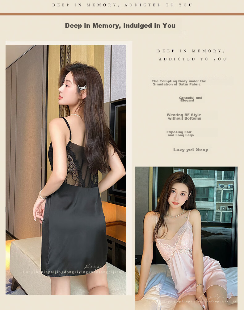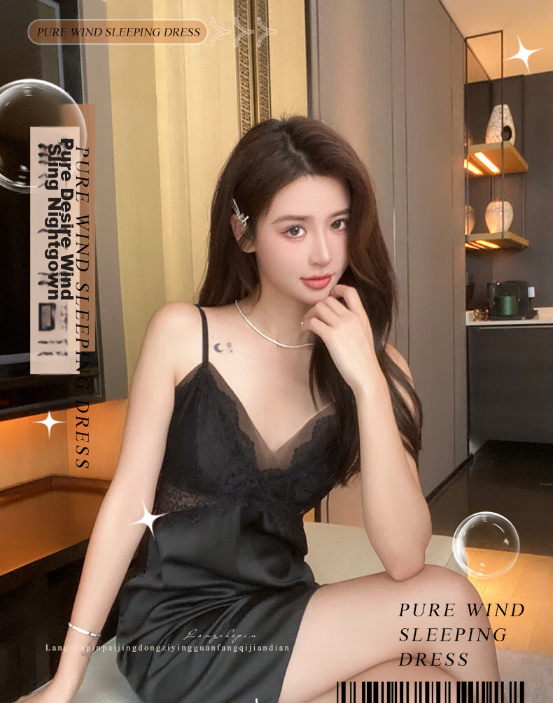 **Description:** The PURE WIND SLEEPING DRESS by LangSha is a seductive and comfortable slip dress made of polyester (imitation silk) and spandex. It is recommended to hand wash in cold water and avoid soaking to maintain color and fabric integrity.