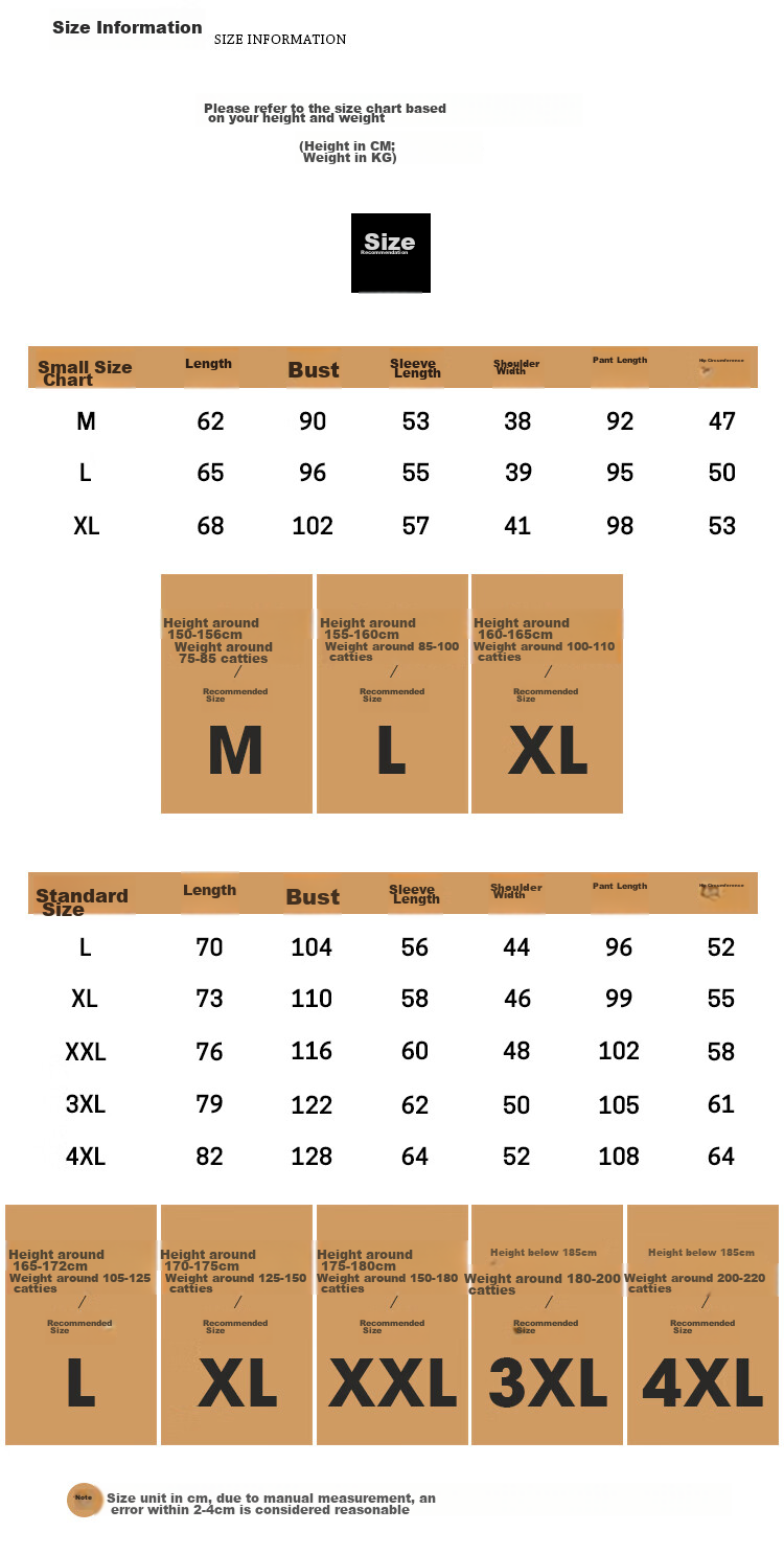 Note: All measurements are in centimeters (cm) and may have a 2-4cm error due to manual measurement, which is within a reasonable range.