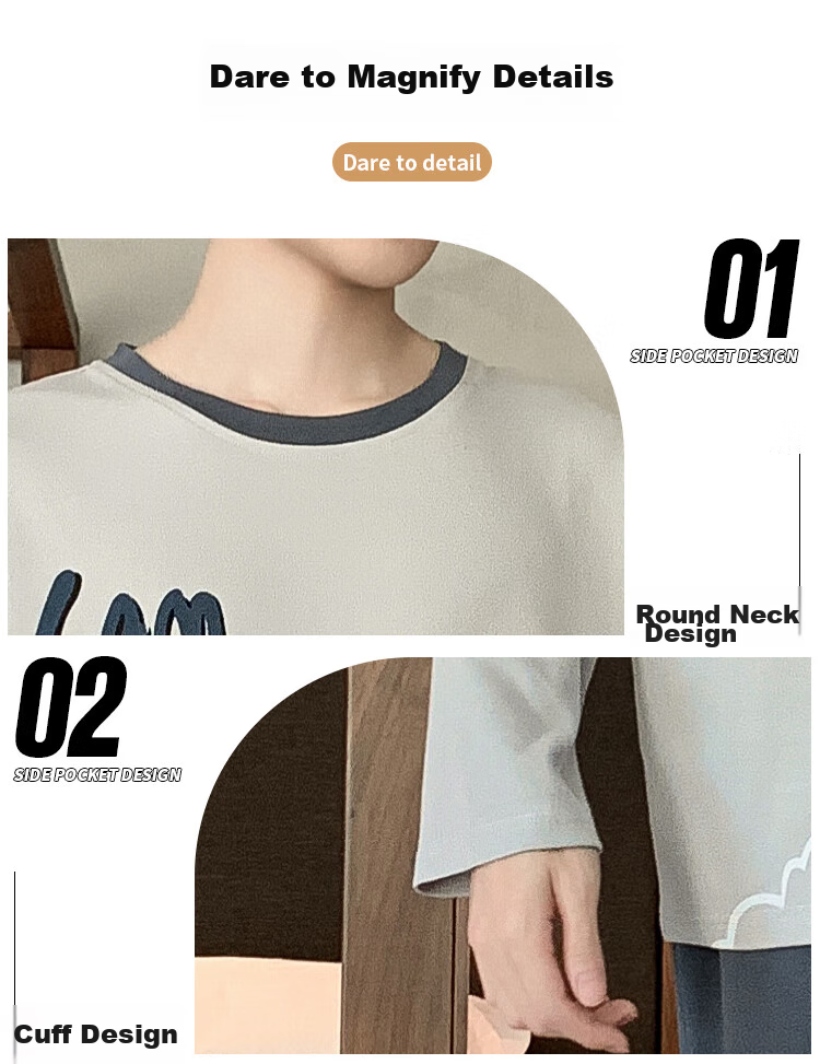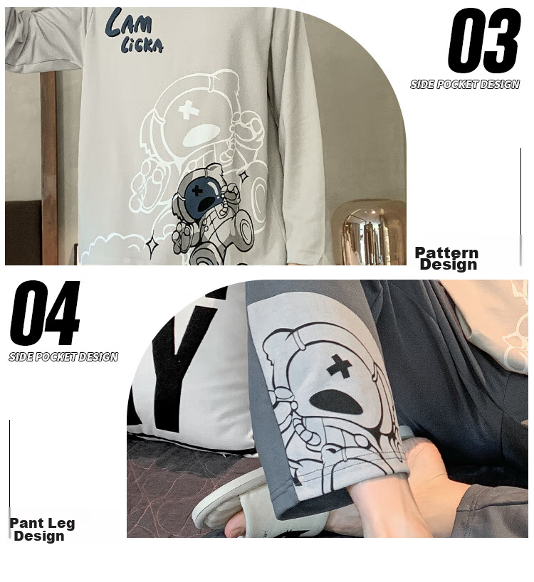 **Details:** Dare to detail, side pocket design, round neck design, cuff design, pattern design, pant leg design