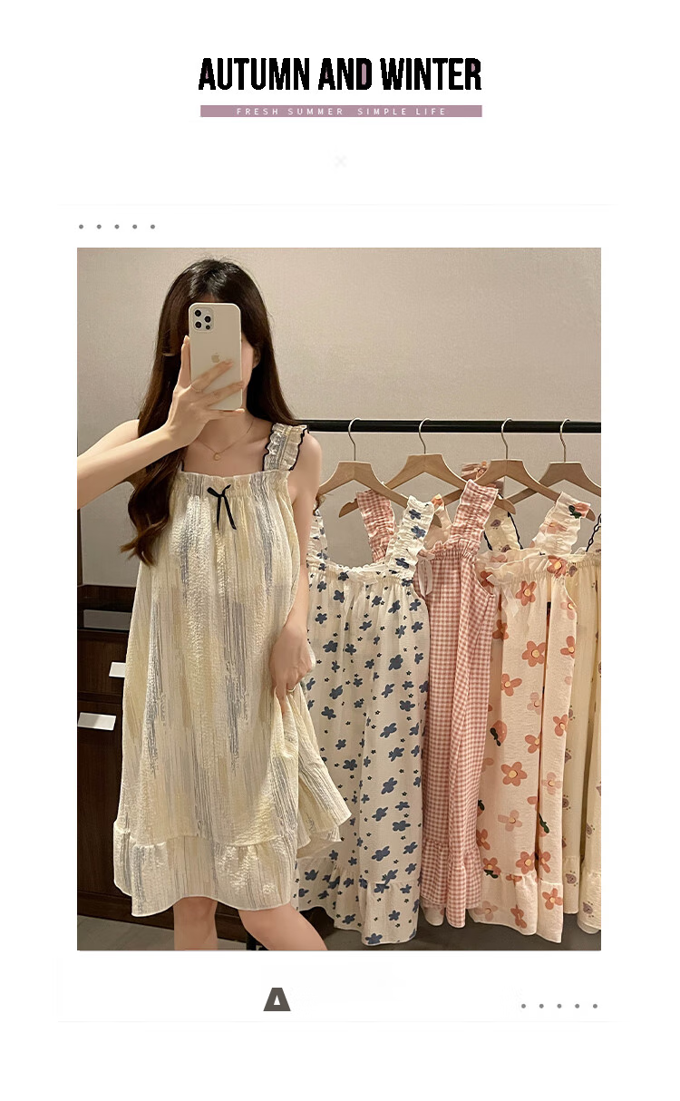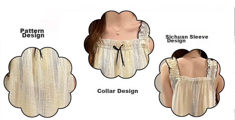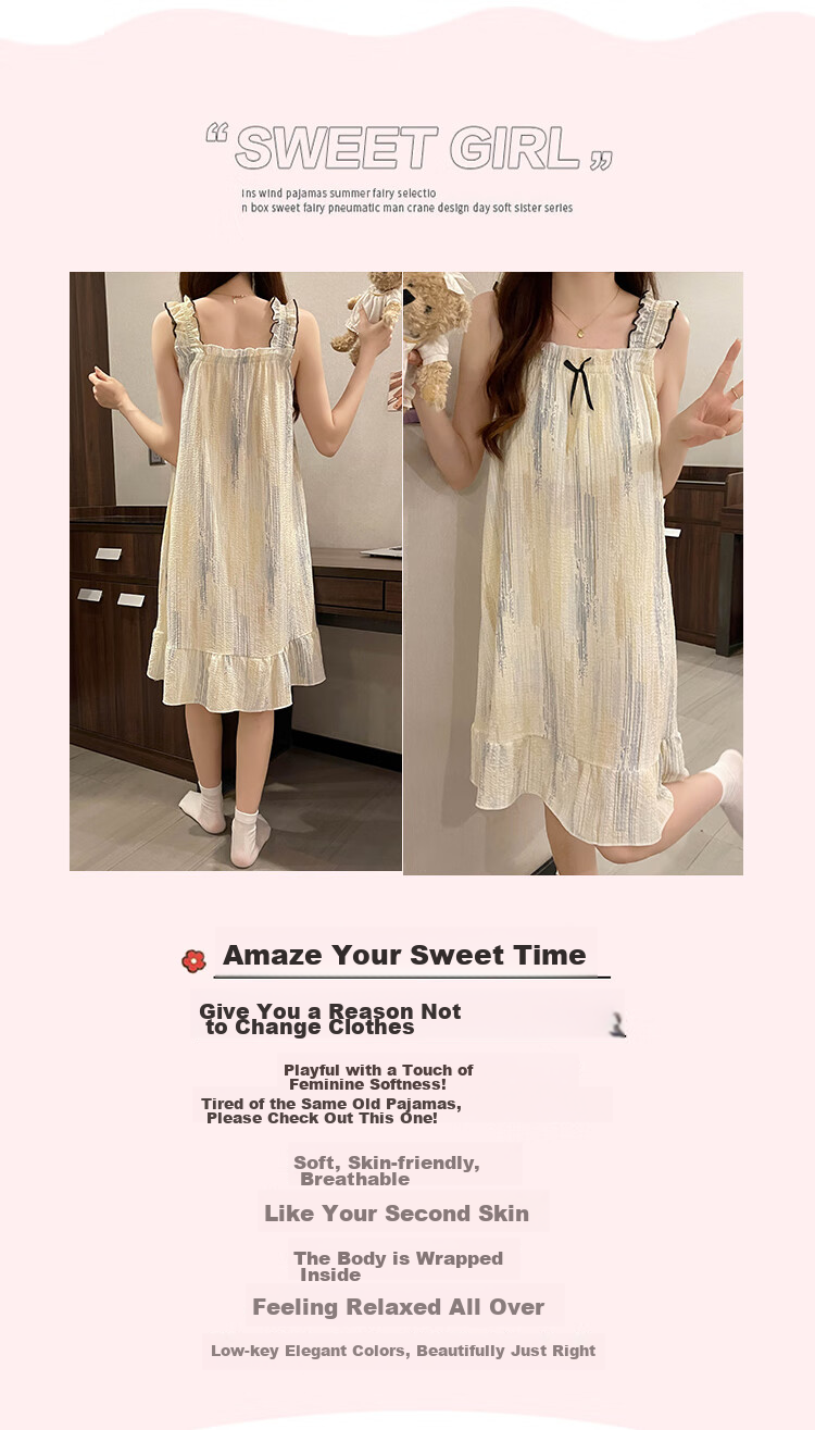 Features: Soft and breathable pajamas suitable for summer and fall, with a sweet and feminine design.