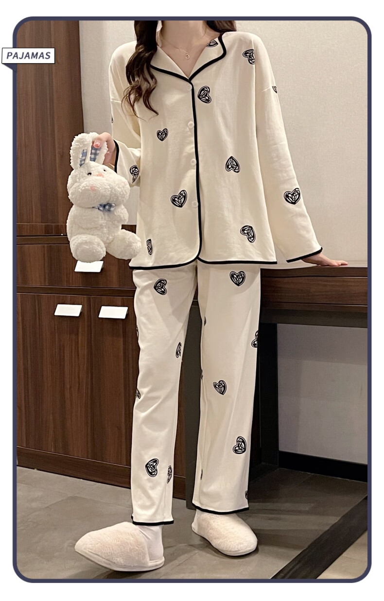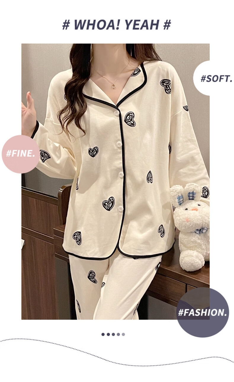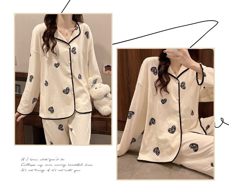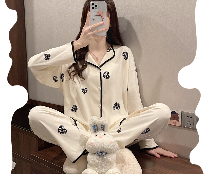 LangSha Sweet Pajamas Women's Cardigan Set Korean Version Long Sleeve Can Be Worn Outside Home Service Red Wind Loose Women's Home Service XL
