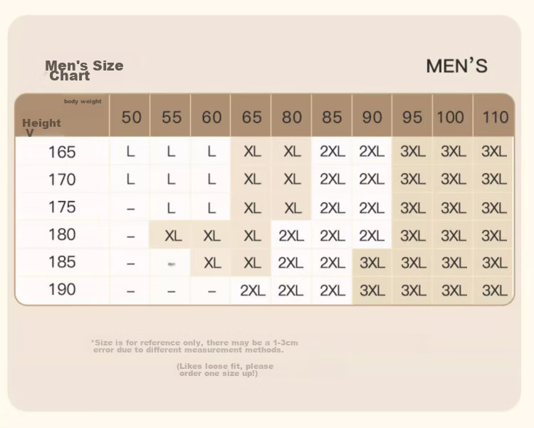 *Note: Sizes are for reference only and may have a 1-3cm difference due to measurement methods. For a loose fit, consider ordering a size up.*