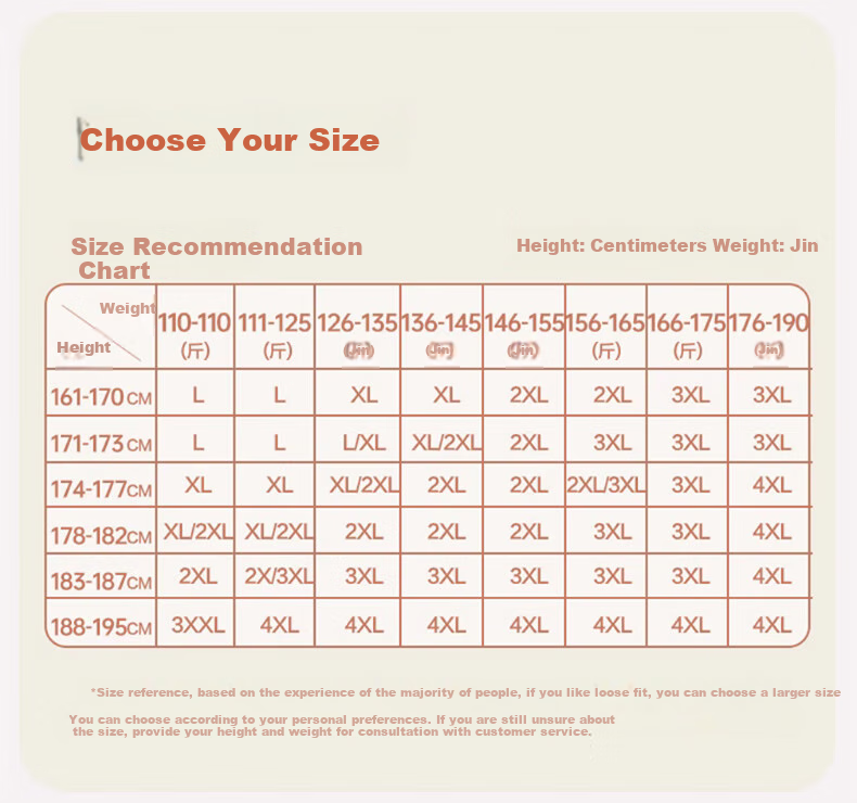 - Refer to the size chart based on height and weight for accurate sizing