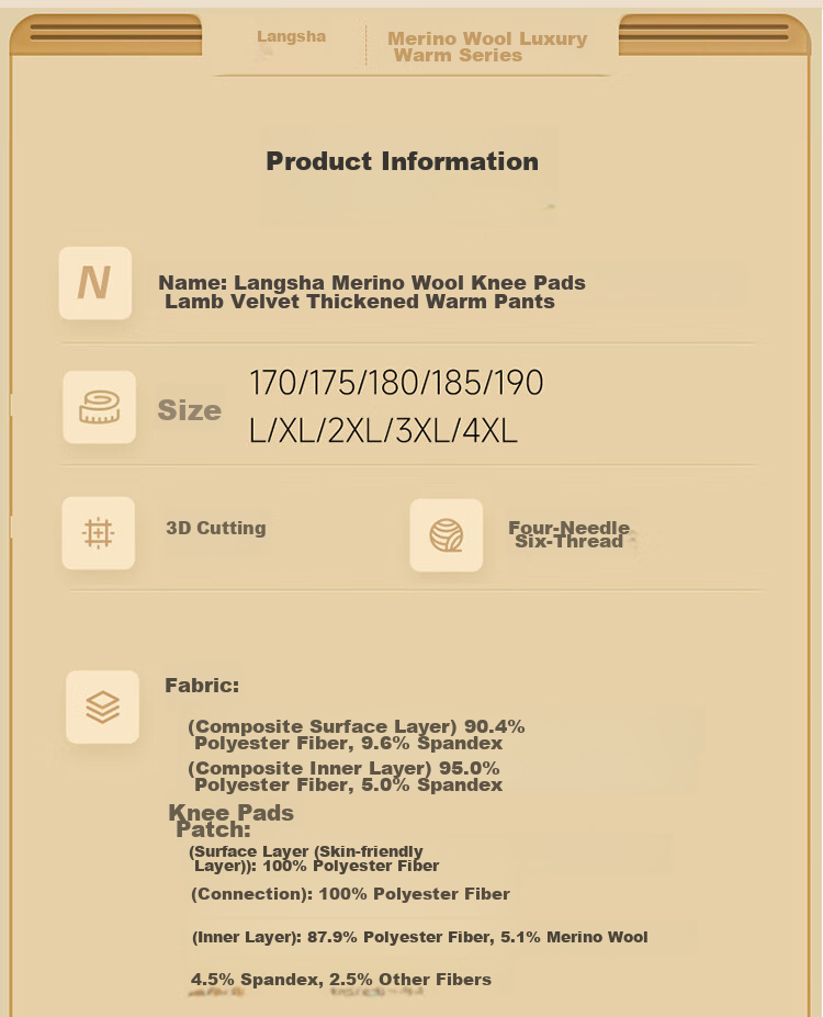 **Disclaimer:** The above information is based on the product description provided for LangSha Thickened Lamb Wool Warm Pants with Knee Protection.