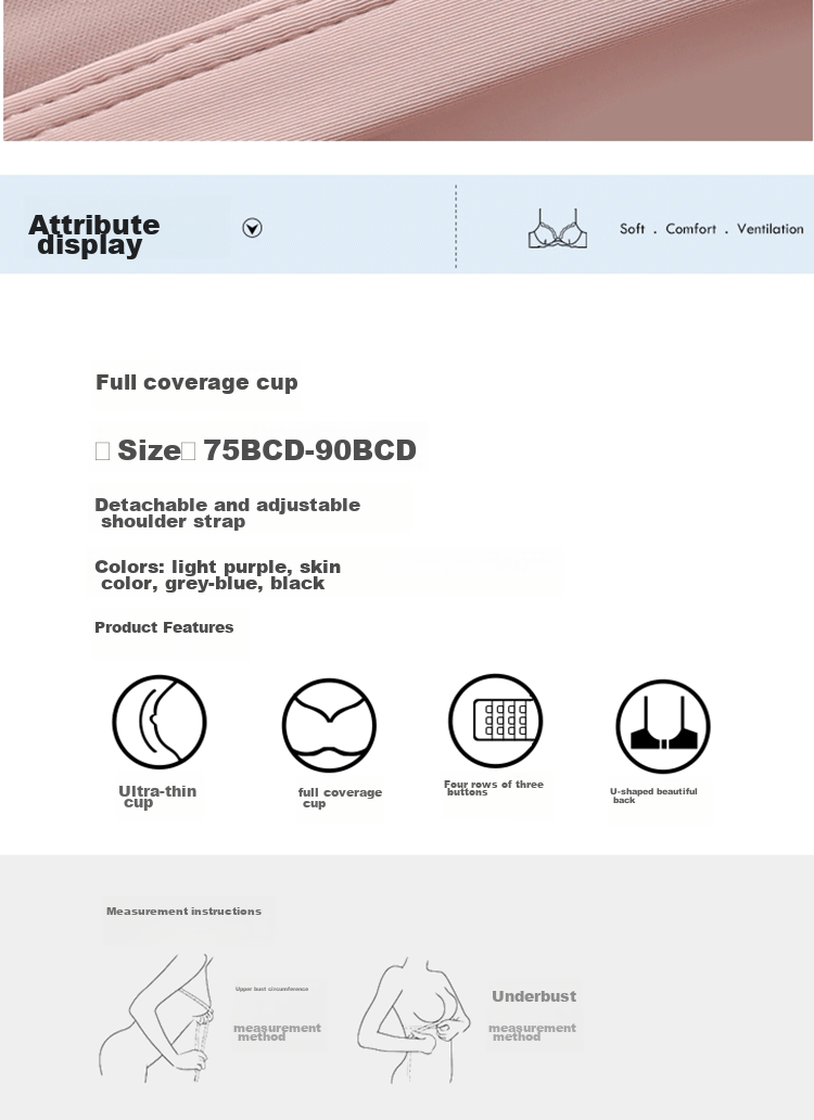 - Full coverage cup, lightweight and thin, suitable for all breast sizes