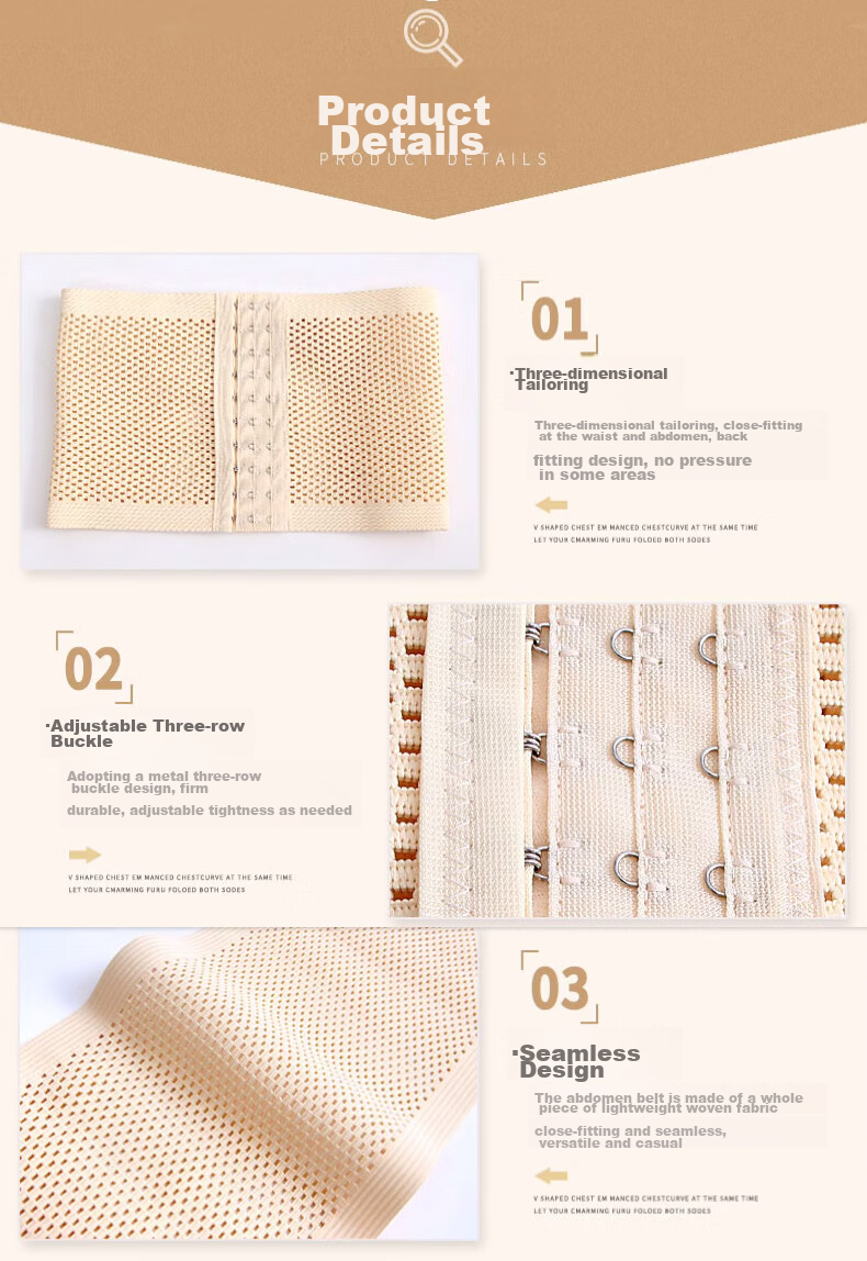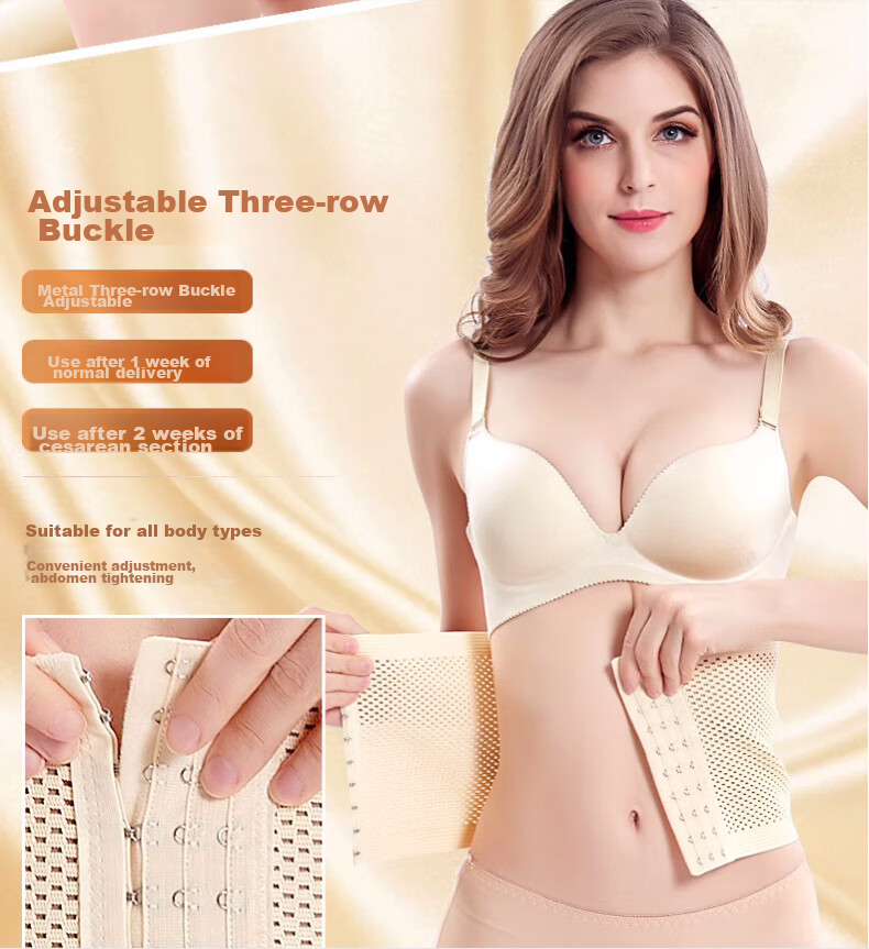 **Adjustable Design:** Metal three-row hooks for postpartum and post-cesarean section use, suitable for various body types.