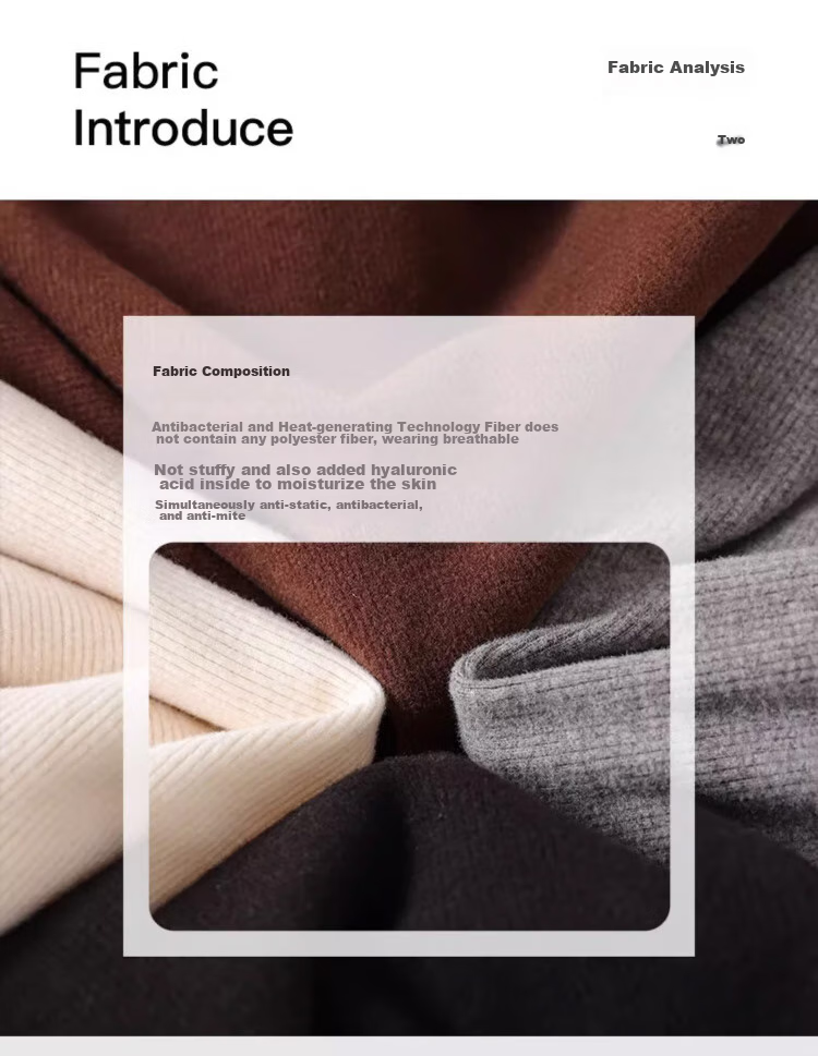 - Antibacterial heating technology fiber without any polyester fiber, breathable and moisture-wicking, added hyaluronic acid for skin hydration, anti-static, antibacterial, and anti-mite properties.