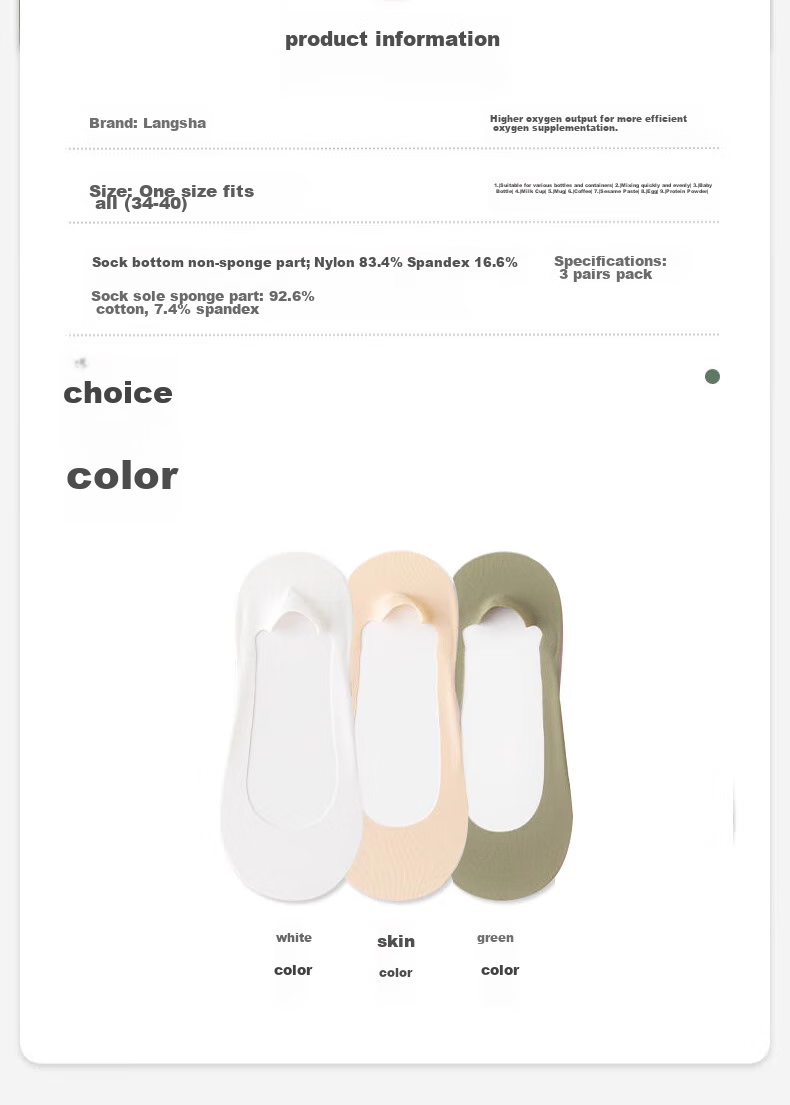 **Design:** Low-cut invisible style, suitable for various types of shoes such as leather shoes, canvas shoes, and high heels