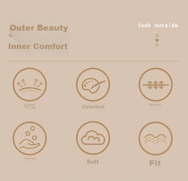 Outer appearance emphasizes aesthetics, while inner comfort focuses on breathability, color fastness, elasticity, skin-friendly, softness, and fit