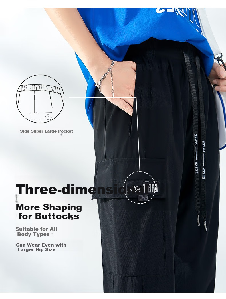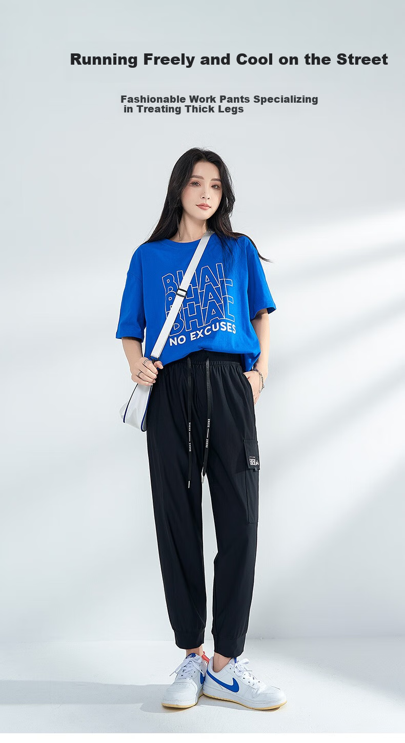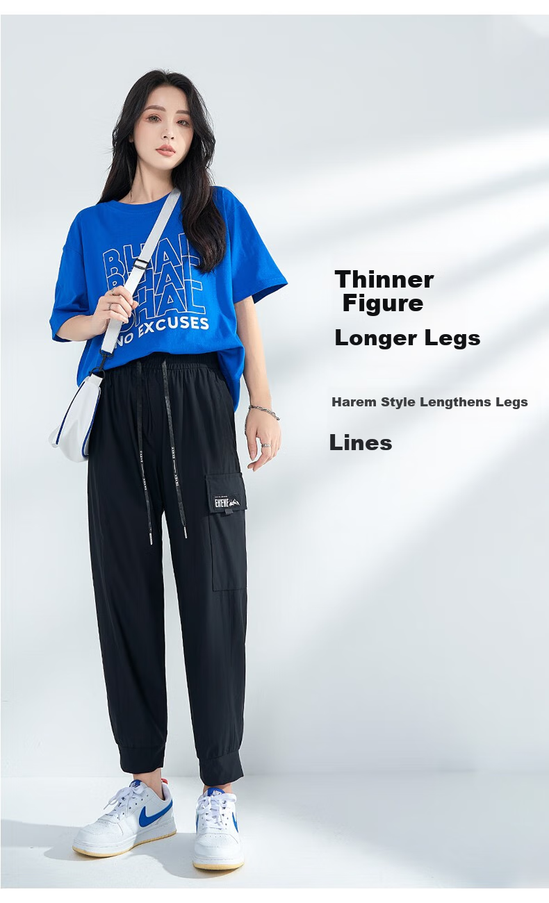**Features:** Longer legs, harem style elongates legs, trendy design, suitable for all body types, enhances leg shape, 3D cutting for slimming effect, high-quality fabric, quick-drying and cooling mineral yarn, comfortable and soft, breathable, elastic, moisture-wicking, water-resistant and windproof, large side pockets, elastic waistband for tummy control, suitable for all sizes, detailed stitching for a flattering look
