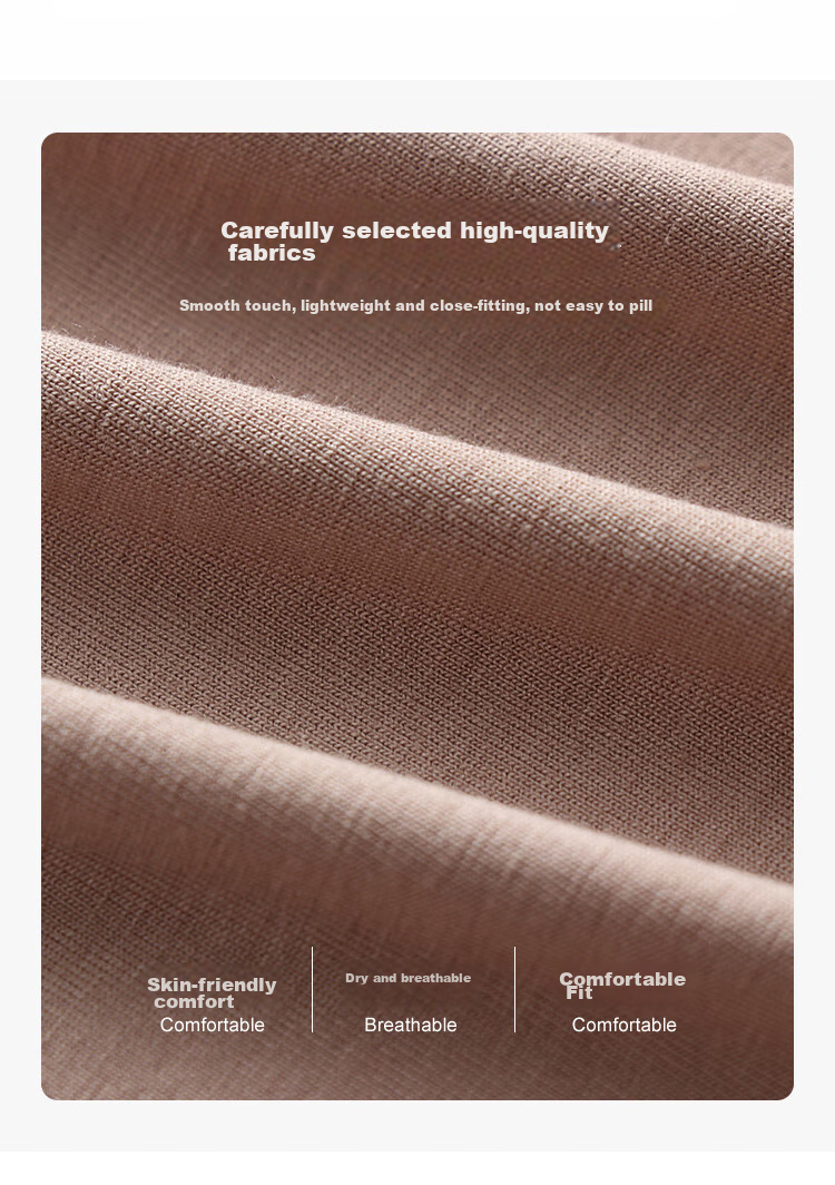 Fabric: Selected high-quality material, smooth touch, lightweight and close-fitting, resistant to pilling, skin-friendly and comfortable, dry and breathable, snug and comfortable
