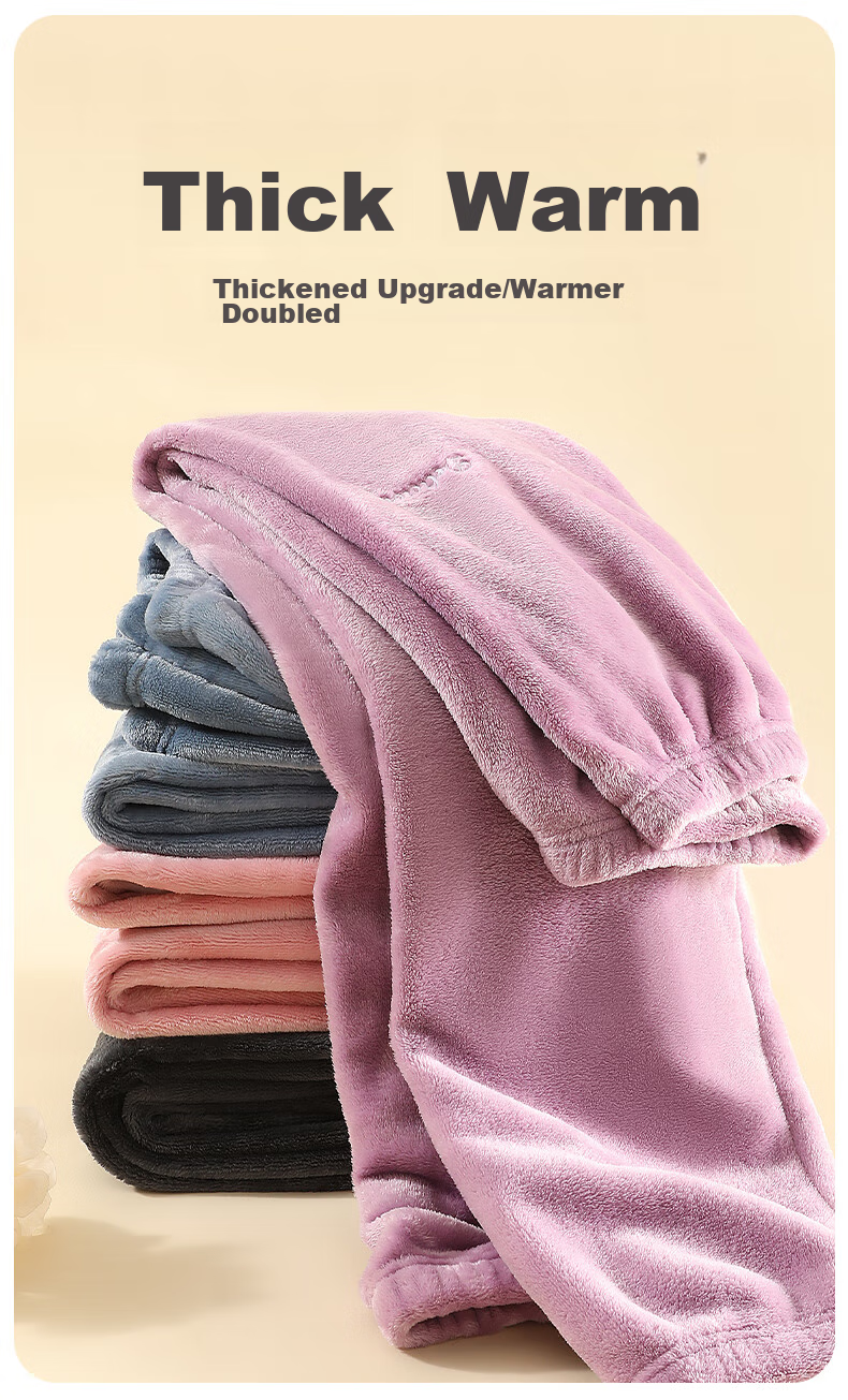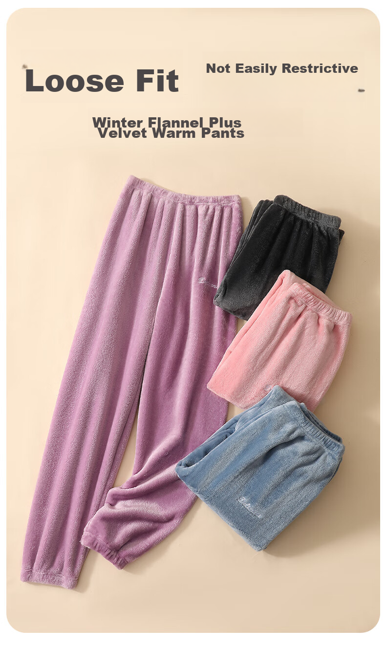 Thick woolen warm pants available in four colors: purple, pink, blue, and grey.