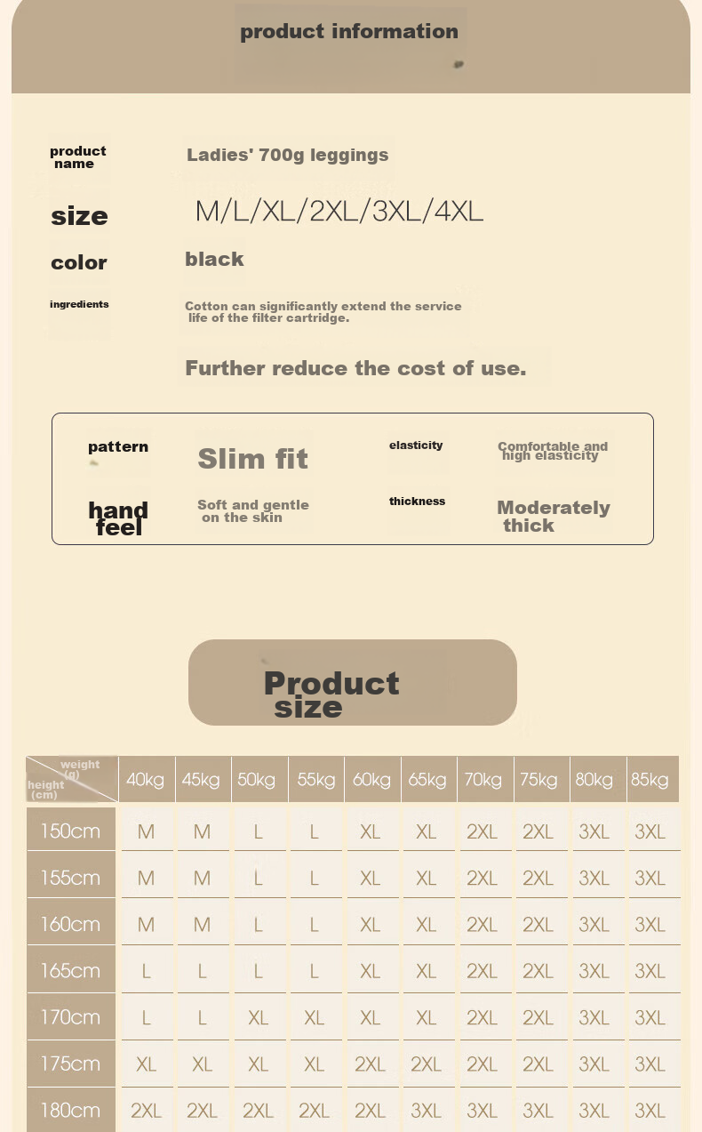 - Inner layer: Polyester fiber 95%, Spandex 5%