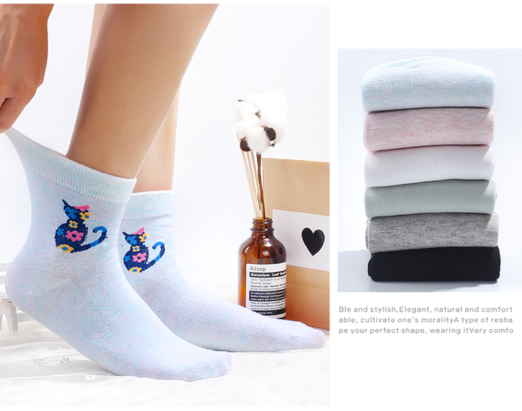 LangSha Women's Cotton Fashion Spring and Autumn Floral Short Socks Cute All Cotton Winter Cotton Socks 6 Pairs One Size